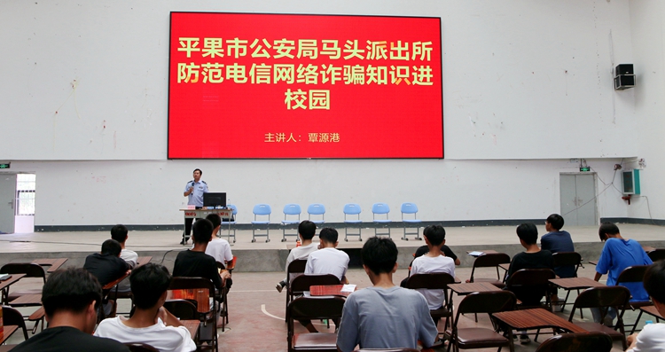 平果市城東派出所所長覃源港為同學(xué)們做防范電信網(wǎng)絡(luò)詐騙知識主題教育講座。他主要針對當(dāng)前大學(xué)生群體面對各類詐騙案件時普遍存在的防范意識差、辨識能力弱、應(yīng)對水平低的現(xiàn)象,結(jié)合工作中的真實(shí)案例,給同學(xué)們進(jìn)行了電信網(wǎng)絡(luò)新型違法犯罪防范知識的宣傳,介紹了電信網(wǎng)絡(luò)詐騙的特征、淵源和現(xiàn)狀;普及了校園防范知識,以及淘寶刷單、好友借款、大學(xué)生網(wǎng)貸等生活中常見的案例,告誡大學(xué)生要做到不輕易提供個人信息,不輕信微信群聊信息、陌生短信、二維碼等,使同學(xué)們進(jìn)一步增加了防詐騙知識,增強(qiáng)了防詐騙意識,提升了防詐騙的能力。