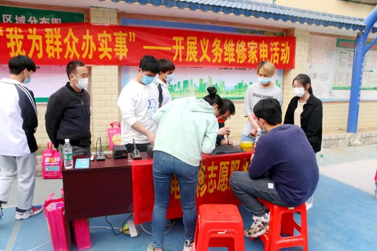 在黨員進社區(qū)“服務(wù)群眾、奉獻社區(qū)”活動中,學(xué)校選派30多名師生黨員,組建家電維修服務(wù)隊到社區(qū)開展家電維修志愿服務(wù)活動,提供免費服務(wù),幫助社區(qū)居民維修小家電共20多件,真正為群眾辦好事、辦實事、解決社區(qū)群眾實際困難和問題,讓居民家門口享受貼心服務(wù),同時讓學(xué)生黨員也能鍛煉動手能力,活學(xué)活用,積累實際經(jīng)驗。