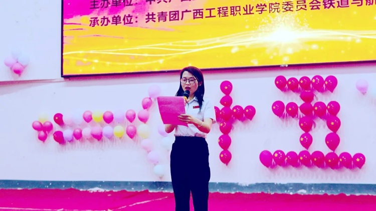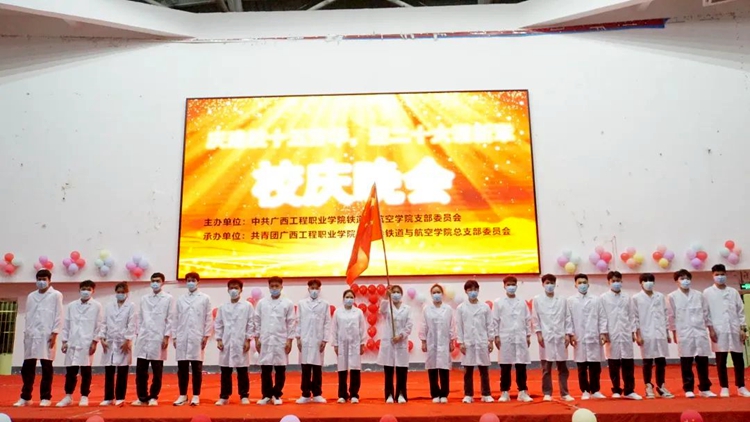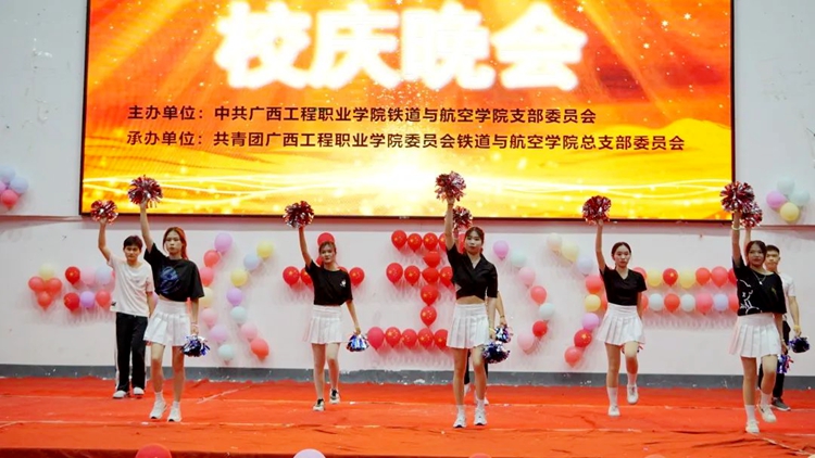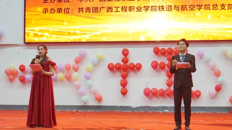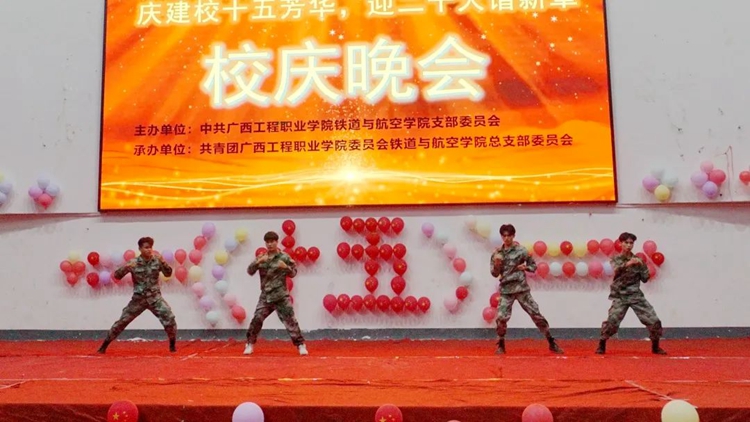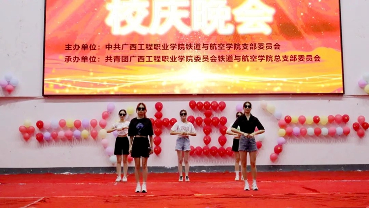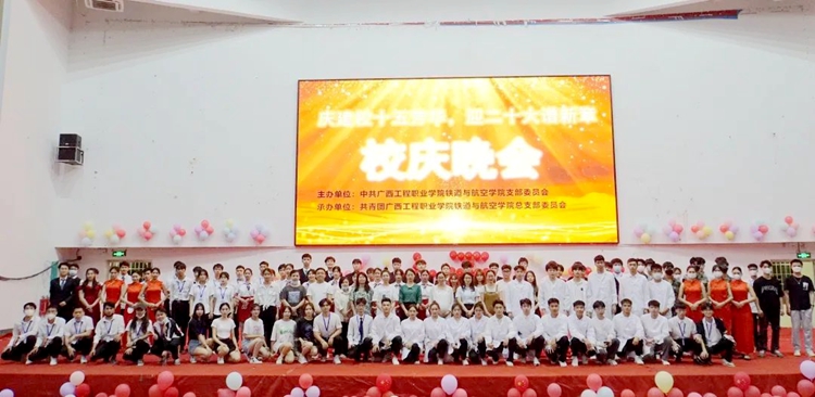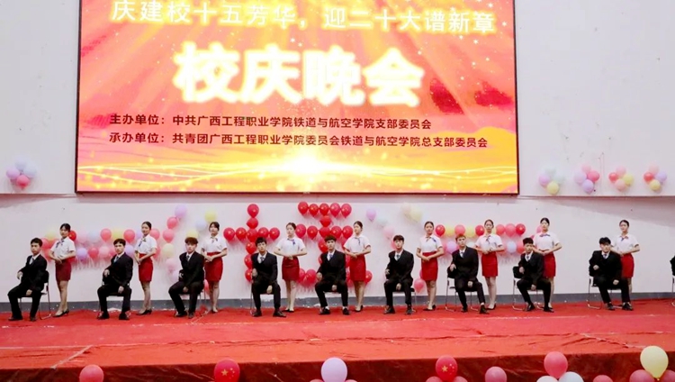 2022年4月14日晚,鐵道與航空學院在體育館舉行“慶建校十五芳華,迎二十大譜新章”文藝晚會,學校黨委副書記黃秋霞、校團委書記梁鳳琴,鐵道與航空學院黨支部書記、院長覃鳳姣,鐵道與航空學院黨支部組織委員謝錫潔、分團委書記謝小玲、辦公室主任黃晶晶,汽車與機電學院分團委書記楊小櫻、土木工程學院分團委書記陳春任出席晚會,各學生會和社團代表參加了此次晚會。