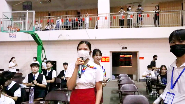 晚會在奏唱中華人民共和國國歌中來開序幕。學校黨委副書記黃秋霞致辭,她在致辭中要求全體師生要牢記習近平總書記的囑托,踐行初心使命,為建設(shè)社會主義現(xiàn)代化強國而努力奮斗,以優(yōu)異成績迎接黨的二十大勝利召開!最后祝愿學校的發(fā)展越來越好!