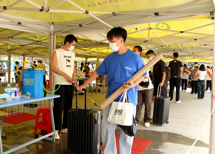 迎新期間,設(shè)置了校外、校內(nèi)迎新點(diǎn)和安全報(bào)到通道,要求全程佩戴口罩、測(cè)量體溫、查驗(yàn)“雙碼”、48小時(shí)內(nèi)核酸檢測(cè)陰性證明及一鍵直報(bào)等,通過安全通道后進(jìn)入校園。入校后,學(xué)校實(shí)施嚴(yán)格的“三天兩檢”制度,切實(shí)維護(hù)疫情防控下校園的穩(wěn)定和學(xué)生安全,為新生們筑起了堅(jiān)固又溫暖的抗疫防線。
