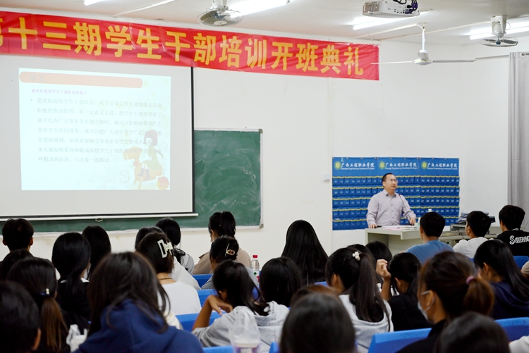 開班儀式結(jié)束后,學校紀委書記、副校長彭高彬,黨委委員、經(jīng)濟管理學院黨支部書記、經(jīng)濟管理學院院長龐英連等領(lǐng)導(dǎo)老師分別為學生干部作了專題培訓(xùn)。