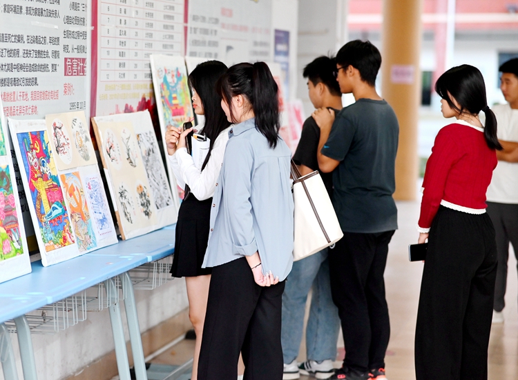 此次展出作品比較豐富,其中包括剪紙、國畫、漫畫、硬筆書法、軟筆書法等作品。題材多樣、風(fēng)格鮮明、構(gòu)思巧妙,體現(xiàn)了學(xué)校美育成果。作品展出期間得到了學(xué)校的領(lǐng)導(dǎo)、教師以及各專業(yè)學(xué)生的踴躍觀覽。
