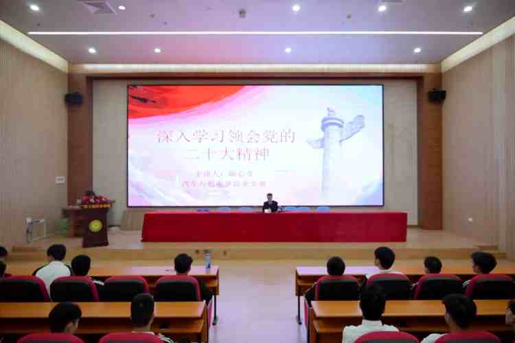 汽車與機(jī)電學(xué)院黨支部書記陸心含作題為《深入學(xué)習(xí)領(lǐng)會黨的二十大精神》的專題學(xué)習(xí)