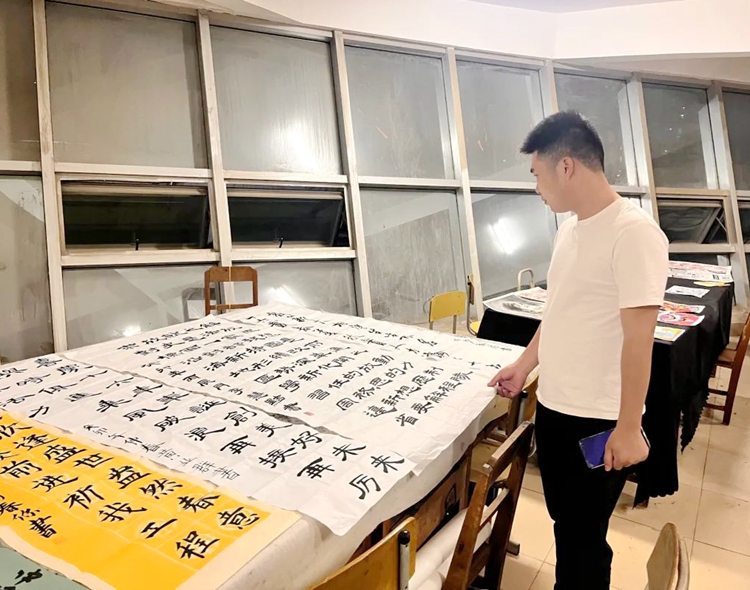 為學(xué)習(xí)貫徹黨的二十大精神,弘揚(yáng)中華民族傳統(tǒng)文化,在師生群體中厚植愛國、愛黨、愛社會主義的情感,同時(shí)加深同學(xué)們對我國書法、繪畫藝術(shù)的了解,讓書法、繪畫興趣愛好者有一個(gè)互相學(xué)習(xí)、進(jìn)步的平臺,2023年5月6日下午,學(xué)校在魯班廣場舉辦“聚青年之火,燃時(shí)代之光”書畫展。