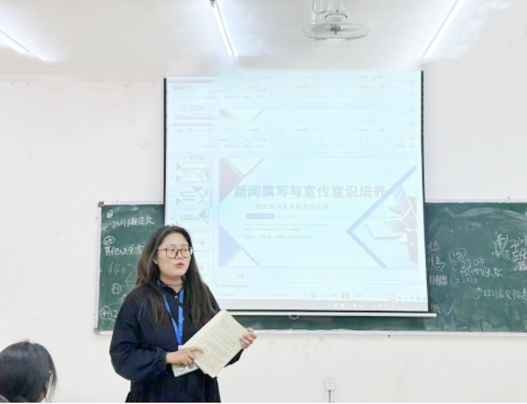 盧海娟老師作題為《新聞撰寫(xiě)與宣傳意識(shí)》的專(zhuān)題培訓(xùn)。盧海娟老師講到嚴(yán)謹(jǐn)?shù)墓ぷ髯黠L(fēng)是學(xué)生干部所需具備的重要素質(zhì),它體現(xiàn)在新聞撰寫(xiě)與宣傳的各個(gè)方面。從發(fā)掘新聞亮點(diǎn)和采訪(fǎng)過(guò)程中,鍛煉、提高學(xué)生干部的信息敏感性,增強(qiáng)學(xué)生干部的新聞宣傳意識(shí),從中培養(yǎng)其比較分析能力、汲取營(yíng)養(yǎng)和新聞撰寫(xiě)能力。