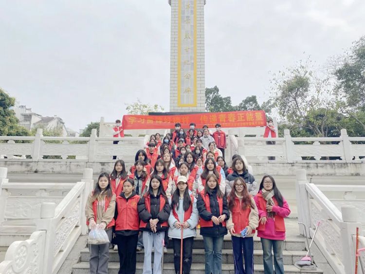 在烈士陵園,同學(xué)們認(rèn)真清潔環(huán)境衛(wèi)生,以實際行動表達對英雄的崇敬和緬懷之情。