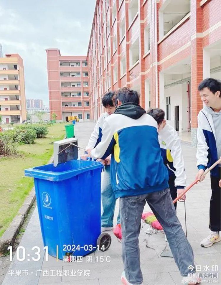 3月12日、3月14日,2022級(jí)產(chǎn)品藝術(shù)設(shè)計(jì)4班、2023級(jí)廣告藝術(shù)設(shè)計(jì)2班和2023級(jí)廣告藝術(shù)設(shè)計(jì)4班的同學(xué)們?cè)谛?nèi)田徑場(chǎng)草坪、教學(xué)樓、生活區(qū)等場(chǎng)所進(jìn)行衛(wèi)生清潔活動(dòng),他們用工具仔細(xì)清理掉每一處垃圾,他們以實(shí)際行動(dòng)踐行了雷鋒精神,共建清潔美麗文明的校園。