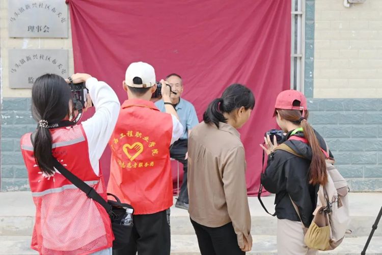 活動(dòng)期間,志愿者們引領(lǐng)老人們到指定的地點(diǎn)拍照,志愿者們拿起相機(jī)為老人們記錄下永恒的一刻。