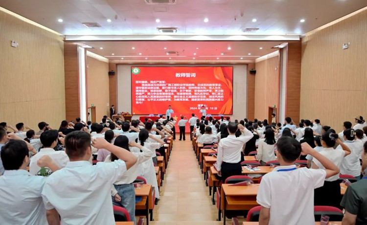 會(huì)上還舉行了重溫教師誓詞儀式,全體教師在黨委副書記黃秋霞的領(lǐng)誓下莊重宣誓。錚錚誓言,是為黨育人、為國育才的決心,更是為教育發(fā)展、國家繁榮、民族振興和學(xué)校高質(zhì)量發(fā)展而努力奮斗的信心!