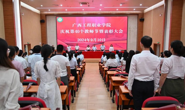 為大力弘揚(yáng)教育家精神,營造全校尊師重教濃厚氛圍,激勵(lì)廣大教師和教育工作者落實(shí)立德樹人根本任務(wù),推動(dòng)學(xué)校更高質(zhì)量發(fā)展,9月10日,廣西工程職業(yè)學(xué)院在圖文信息大樓報(bào)告廳召開慶祝第40個(gè)教師節(jié)暨表彰大會(huì)。