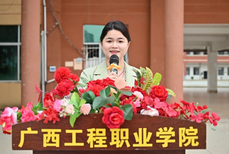 圖為團(tuán)委副書記李麗清宣讀倡議書
