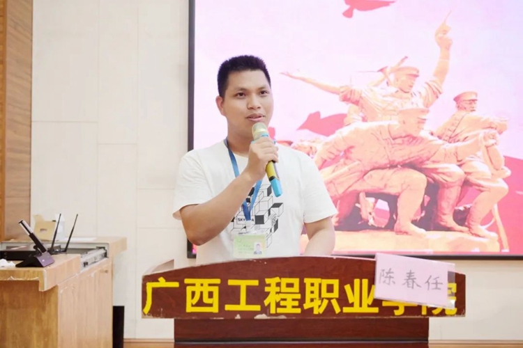 圖為主講人:汽車與機(jī)電學(xué)院分團(tuán)委書記陳春任