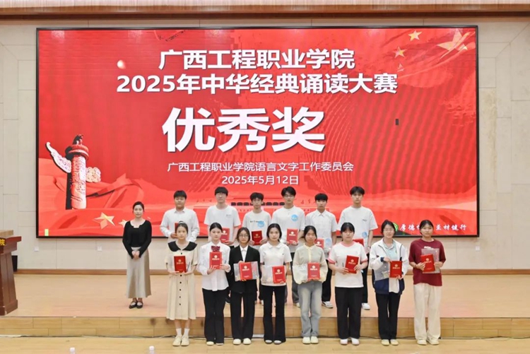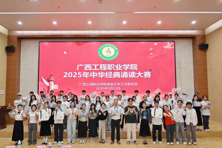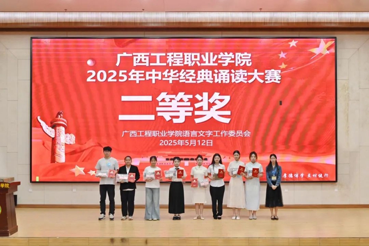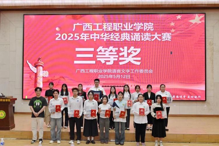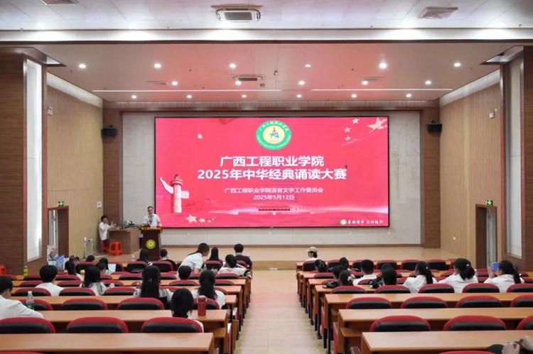 為全面貫徹落實(shí)黨的二十大和二十屆二中、三中全會精神,深入貫徹落實(shí)全國教育大會精神,服務(wù)教育強(qiáng)國、文化強(qiáng)國建設(shè),加大國家通用語言文字推廣普及力度,傳承弘揚(yáng)中華優(yōu)秀傳統(tǒng)文化,落實(shí)全國青少年讀書行動(dòng),推進(jìn)文化自信自強(qiáng),2025年5月12日,我校在圖文信息大樓一樓學(xué)術(shù)報(bào)告廳舉行廣西工程職業(yè)學(xué)院2025年“典耀中華,賡續(xù)文脈”中華經(jīng)典誦讀大賽。