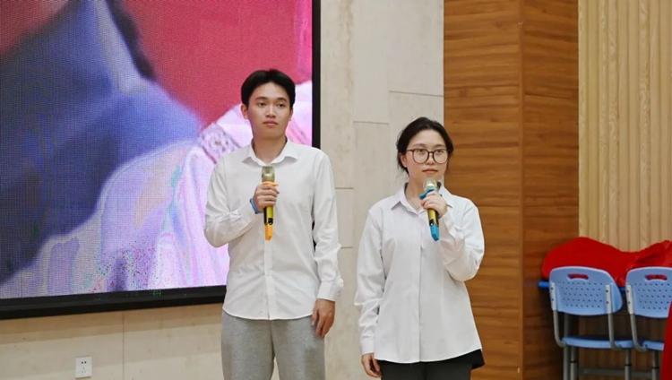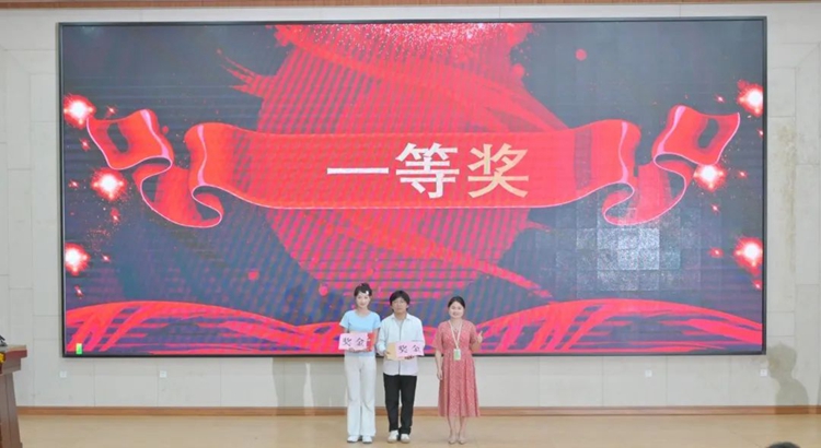 圖為團(tuán)委副書(shū)記李麗清為獲得“一等獎(jiǎng)”的同學(xué)頒獎(jiǎng)