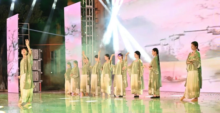 她們宛如春日里破土而出的新芽,帶著清新與靈動,在舞臺上緩緩舒展。每一個動作都輕盈飄逸,仿佛是被春風輕拂過的柳枝,柔美而富有韻律。