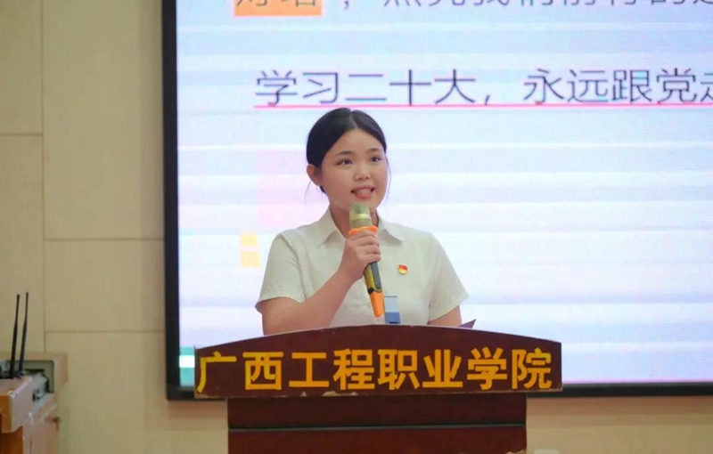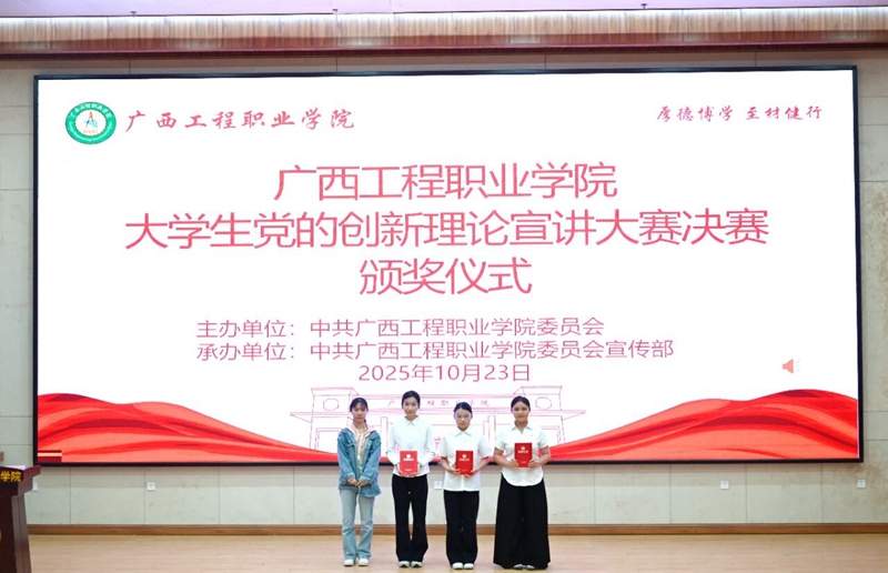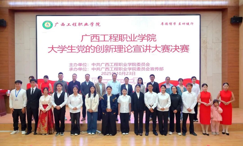 為進(jìn)一步推動(dòng)學(xué)習(xí)宣傳貫徹習(xí)近平新時(shí)代中國(guó)特色社會(huì)主義思想走深走實(shí)走心,增進(jìn)我校學(xué)生對(duì)黨的創(chuàng)新理論的政治認(rèn)同、思想認(rèn)同、理論認(rèn)同、情感認(rèn)同,10月23日晚,廣西工程職業(yè)學(xué)院大學(xué)生黨的創(chuàng)新理論宣講大賽決賽在圖文信息大樓一樓學(xué)術(shù)報(bào)告廳舉行。學(xué)校黨委書(shū)記、政府督導(dǎo)專(zhuān)員蒙本曼出席現(xiàn)場(chǎng),黨委辦公室、黨委宣傳部、各黨組織書(shū)記(副書(shū)記)及二級(jí)學(xué)院師生代表400多人到場(chǎng)觀賽。