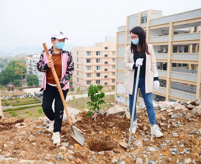 為進一步實施校園綠化美化工程,努力營造綠色良好的校園環(huán)境,推進生態(tài)文明建設,在植樹節(jié)來臨之際, 3月11日,學校黨委副書記黃秋霞、副校長林艷帶領學校中層干部、教師代表50余人開展植樹活動,用實際行動創(chuàng)建綠色學校,助推生態(tài)文明建設,打造美麗廣工院。