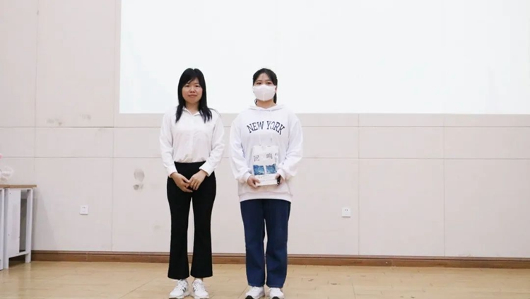 閆雪蓮老師為獲得三等獎(jiǎng)的同學(xué)頒獎(jiǎng)