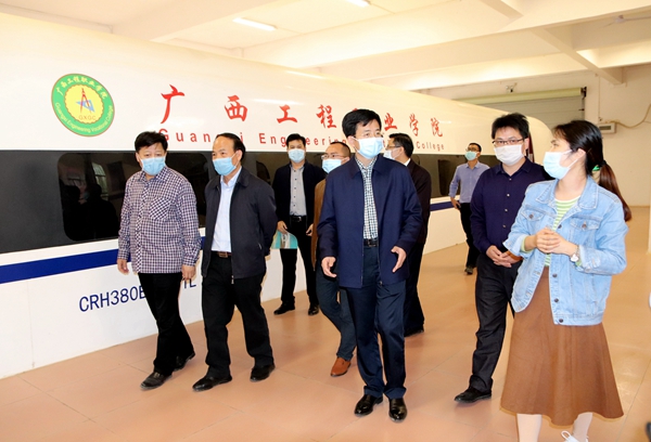 2020年4月8日下午,百色市委常委、統(tǒng)戰(zhàn)部部長羅試堅來我校參觀調研,指導學校開學準備工作及疫情防控工作。平果縣委常委、統(tǒng)戰(zhàn)部部長李俊整,平果縣大學園區(qū)黨工委書" />