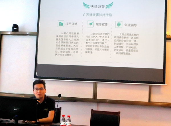 百色市創(chuàng)業(yè)孵化基地負(fù)責(zé)人楊樹(shù)源作創(chuàng)新創(chuàng)業(yè)宣講