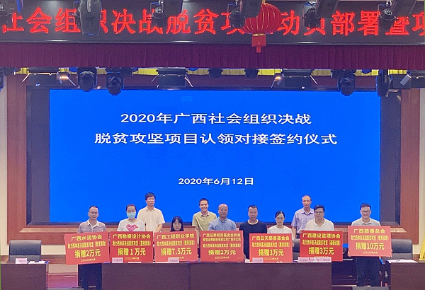 2020年6月12日,我校參加自治區(qū)民政廳2020年廣西社會(huì)組織決戰(zhàn)脫貧攻堅(jiān)動(dòng)員部署暨項(xiàng)目認(rèn)領(lǐng)對(duì)接會(huì),并認(rèn)領(lǐng)決戰(zhàn)脫貧攻堅(jiān)對(duì)口支援項(xiàng)目,捐資7.5萬(wàn)元資助西林縣八達(dá)鎮(zhèn)周幫村15戶(hù)因家庭經(jīng)濟(jì)困難面臨輟學(xué)的貧困學(xué)生。