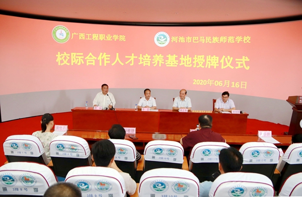 為大力發(fā)展職業(yè)教育,推進(jìn)中職高職教育有效銜接、協(xié)調(diào)發(fā)展,加快構(gòu)建現(xiàn)代職業(yè)教育體系,6月16日,我校校長(zhǎng)唐林、紀(jì)委書(shū)記李益等一行赴河池市巴馬民族師范學(xué)校就兩校共建校際合作人才培養(yǎng)基地進(jìn)行授牌。