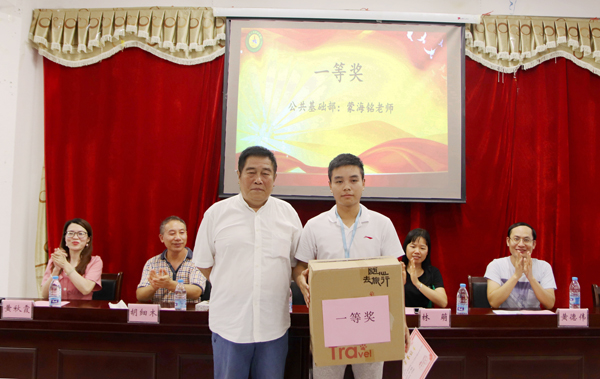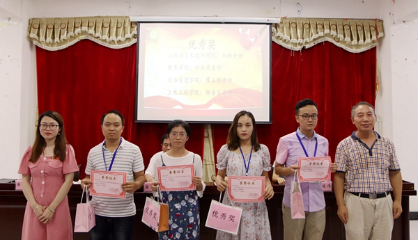 獲獎教師代表蒙海銘老師發(fā)言,他感謝學校提供了這樣一個活動平臺,促進和推動了自己的專業(yè)成長;今后他將再接再厲,多與老教師、優(yōu)秀教師交流學習,不斷提高自己的教學能力和水平,為學校的申本工作添磚加瓦,為學校的人才培養(yǎng)質(zhì)量上新臺階奉獻力量。