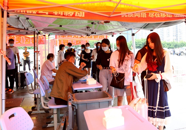 新生開學(xué)時期,學(xué)校在南寧市和平果市各個汽車站、火車站等設(shè)置迎新接待點,并安排校車接送新生到校。在校門口設(shè)置體溫檢測、行李消殺、出入掃碼、更換口罩等新冠肺炎疫情防控檢查通道及卡點,校內(nèi)開通新生入學(xué)報到綠色通道,張貼入學(xué)報到流程,設(shè)置接待、引領(lǐng)、咨詢、行李寄存、各二級學(xué)院注冊區(qū)、后勤生活物品領(lǐng)取等服務(wù)崗,確保迎新工作安全、有序、順利。