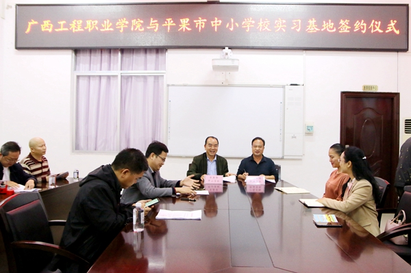 2020年11月2日,我校與平果市13所中小學(xué)校共建教育實(shí)習(xí)基地的集體簽約儀式在平果市教育局會(huì)議室舉行。