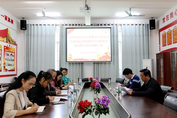 會上,黨委委員、黨委辦副主任李麗詩向百色市教育工委新時代黨的組織路線調(diào)研組匯報了我校貫徹落實新時代黨的組織路線情況排查整改工作情況。匯報了我校加強領(lǐng)導(dǎo)班子建設(shè)、強化黨員教育管理、集中抓好問題整改等突出查改重點內(nèi)容。