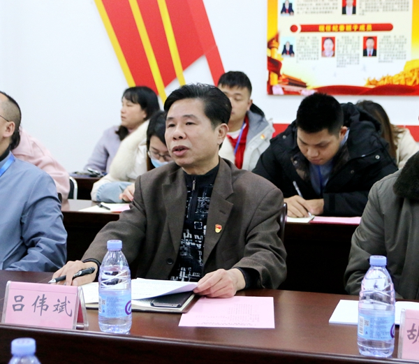 最后,百色市教育工委陳詩明同志也在會上作了體會和建議發(fā)言,他高度肯定了我校黨委理論學(xué)習(xí)中心組學(xué)習(xí)第六次集體(擴大)學(xué)習(xí)會的充分準備工作,指出學(xué)習(xí)會主題發(fā)言非常鮮明發(fā)言的同志都能做到做懂弄通,都能理論結(jié)合實際談感受和做法。同時,陳詩明副局長還提出了兩點建議,一是在學(xué)習(xí)臺賬上要做好充分準備,要結(jié)合原文進行學(xué)習(xí);二是在重點發(fā)言上,要列出發(fā)言內(nèi)容,做到發(fā)言更有針對性。