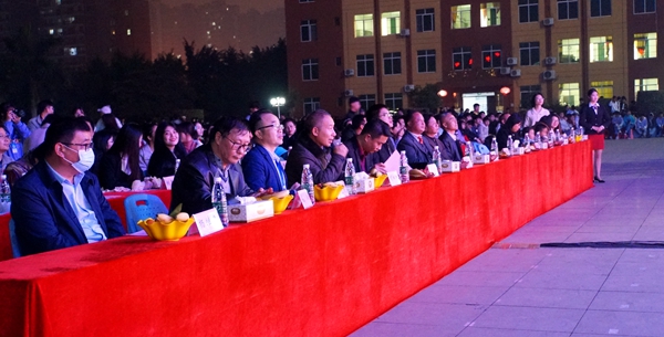共青團平果市委員會團委書記董亦輝、平果市大學園區(qū)管理服務中心主任羅永林、廣西動高集團總經理朱偉、北京博明書源文化有限公司總經理楊繼先以及我校黨政領導班子出席晚會現場,與全體師生歡聚一堂共慶元旦。