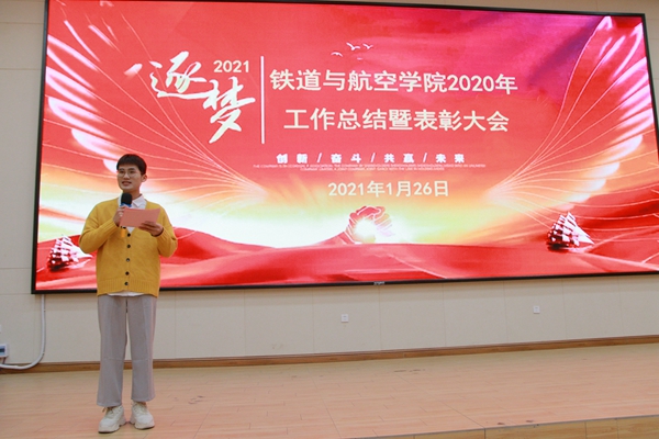 2021年1月26日下午,學(xué)校圖文信息大樓報(bào)告廳歡聲笑語(yǔ),熱鬧非凡,鐵道與航空學(xué)院2020年度工作總結(jié)大會(huì)在這里舉行,大會(huì)總結(jié)過(guò)去一年的工作成績(jī),表彰貢獻(xiàn)突出的先進(jìn)個(gè)人,全體參會(huì)的教師還現(xiàn)場(chǎng)抽取年度幸運(yùn)獎(jiǎng),提前感受熱鬧的年味。