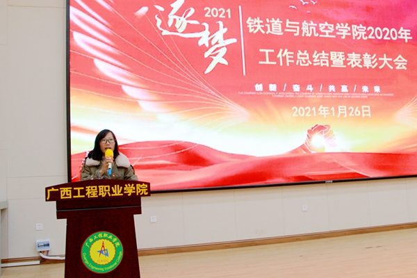 會(huì)上,覃清香副院長(zhǎng)對(duì)鐵道與航空學(xué)院2020年總體工作進(jìn)行總結(jié),她充分肯定了學(xué)院全體專(zhuān)兼職教師、輔導(dǎo)員、行政人員在教育教學(xué)、學(xué)生管理、黨團(tuán)建設(shè)等方面做出的努力和成績(jī),同時(shí)也指出了不足之處。覃清香副院長(zhǎng)希望全體鐵道與航空學(xué)院教師在新的學(xué)年要履好職責(zé)、勇?lián)耸姑?,繼續(xù)努力,共同推進(jìn)學(xué)院的新的教育事業(yè)取得新發(fā)展。