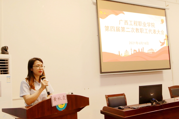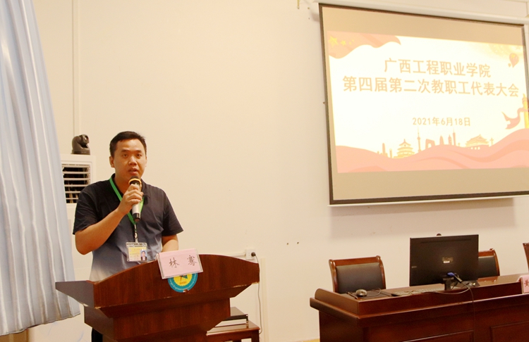 最后,工會(huì)副主席林騫分別宣讀《廣西工程職業(yè)學(xué)院教學(xué)事故認(rèn)定及處理辦法》(修訂稿)決議、《廣西工程職業(yè)學(xué)院教職工考勤及請假管理規(guī)定》(修訂稿)決議。