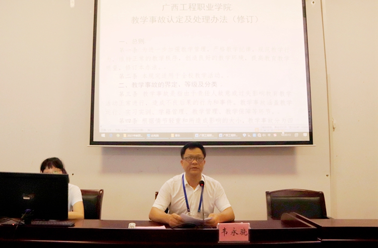 教學(xué)督導(dǎo)室副主任韋永驍對《廣西工程職業(yè)學(xué)院教學(xué)事故認(rèn)定及處理辦法》(修訂稿)進(jìn)行解讀和說明