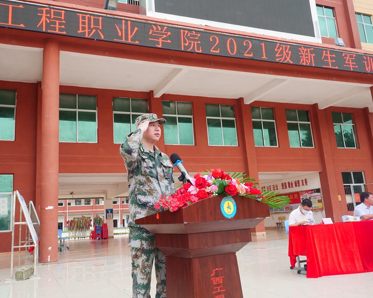 廣西綠盾國防教育基地主任陸俊余教官代表、經濟管理學院2021級新生代表朱開軒同學分別發(fā)言,共同表達了完成本次軍訓任務的堅定信心和決心。教師代表藝術設計學院胡楚楚老師發(fā)言,希望同學們通過軍訓,不斷挑戰(zhàn)自我、超越自我,錘煉意志,砥礪品質,以良好的軍訓狀態(tài),嶄新的精神風貌展現大學生的時代風采。