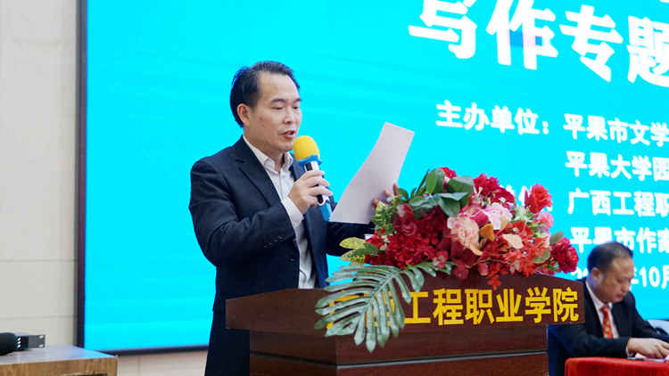 2021年10月23日上午,由平果市文學(xué)藝術(shù)界聯(lián)合會(huì)、平果市大學(xué)園區(qū)管理服務(wù)中心主辦,廣西工程職業(yè)學(xué)院承辦,平果市作家協(xié)會(huì)協(xié)辦的平果市2021年“名家講堂——田代琳(東西)閱讀與寫作專題講座”在我校圖文信息大樓報(bào)告廳舉行。