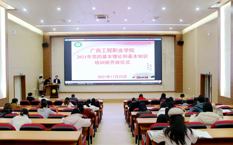 11月23日下午,由學(xué)校黨委舉辦的廣西工程職業(yè)學(xué)院 2021 年黨的基本理論和基本知識培訓(xùn)班在圖文信息大樓學(xué)術(shù)報告廳開班。參加開班儀式人員有黨委委員、各黨(總)支書記、支委、思政課教師共100人,黨委辦公室副主任黃香琴主持儀式,校黨委書記呂偉斌出席開班儀式并講話。