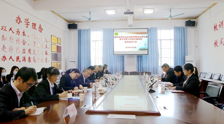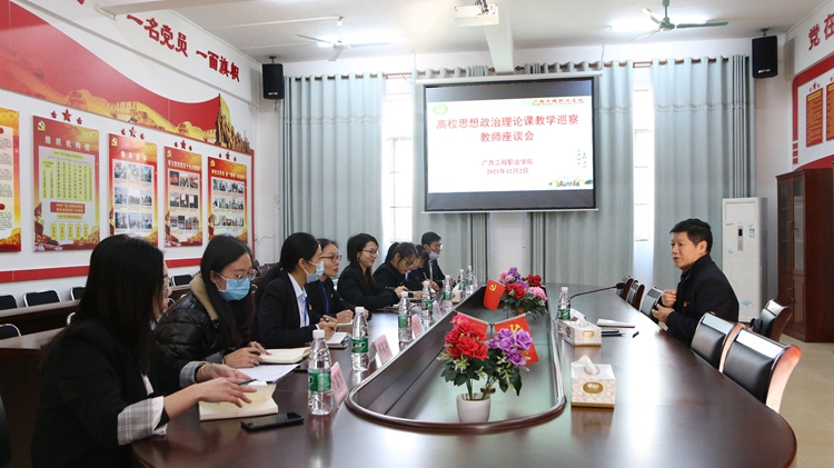 12月2日上午,由桂林航天工業(yè)學院副校長胡澤民教授、南寧師范大學馬克思主義學院院長曾令輝教授、桂林師范高等??茖W校馬克思主義學院院長馬健芳教授、桂林航天工業(yè)學院馬克思主義學院張君副教授組成的2021年高校思想政治理論課教學巡察專家組到我校開展巡察工作。教育廳教育督導專員、學校黨委書記呂偉斌,學校紀委書記李益,黨委委員、副校長彭高彬,副校長黃德偉副教授等校級領(lǐng)導出席了匯報會和反饋會,學校各部門負責人、各黨(總)支部書記、思政課教學部負責人、思政課教師代表及學生代表參加了教學巡察工作相關(guān)活動。