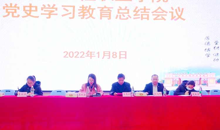 為深入學(xué)習(xí)貫徹習(xí)近平總書記對黨史學(xué)習(xí)教育的歷次重要講話、作出的重要批示指示精神,中央、自治區(qū)及自治區(qū)教育系統(tǒng)黨史學(xué)習(xí)教育總結(jié)會議精神,全面回顧總結(jié)學(xué)校黨史學(xué)習(xí)教育的經(jīng)驗,鞏固黨史學(xué)習(xí)教育成果,2022年1月8日上午,我校在圖文信息大樓召開了黨史學(xué)習(xí)教育總結(jié)大會。學(xué)校黨委委員、各黨(總)支部書記、支委,黨委辦公室全體成員,思政課教學(xué)部全體老師,校園文化建設(shè)中心負責(zé)人、部分黨員代表參加會議,學(xué)校黨委副書記黃秋霞同志主持會議。