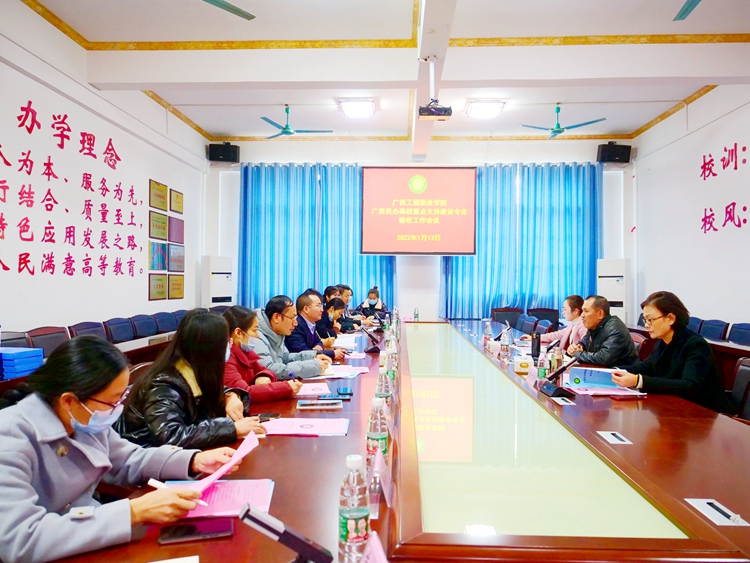 1月13日,以廣西國際商務(wù)職業(yè)學(xué)院原黨委書記陸耀新教授為組長的自治區(qū)高校重點支持建設(shè)專業(yè)驗收專家組一行3人蒞臨我校,通過聽取匯報、實地考察、交流訪談、查閱資料等方式對建筑室內(nèi)設(shè)計專業(yè)、城市軌道交通工程技術(shù)專業(yè)兩個重點支持建設(shè)專業(yè)進(jìn)行檢查驗收。學(xué)校紀(jì)委書記、副校長彭高彬,副校長林萌、黃德偉及校長助理蔣茂麗等學(xué)校領(lǐng)導(dǎo)出席會議,教務(wù)處、人力資源處、財務(wù)處等相關(guān)職能部門負(fù)責(zé)人參加了會議。會議由彭高彬紀(jì)委書記主持。