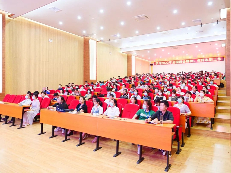 龐英連院長(zhǎng)作題為《學(xué)習(xí)2022年全國(guó)兩會(huì)精神,做好本職工作,為學(xué)校發(fā)展做應(yīng)有的貢獻(xiàn)》的專題
