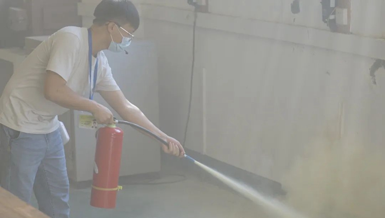 演練開始,實(shí)驗(yàn)實(shí)訓(xùn)室濃煙滾滾,室內(nèi)煙霧報(bào)警器響起,同學(xué)們手持濕毛巾掩住口鼻,采取低姿勢,在任課教師的指導(dǎo)下,安全、有序、迅速從安全通道撤離實(shí)驗(yàn)室,并聽從工作人員的指揮,安全疏散到實(shí)驗(yàn)室外安全空地。任課教師及時(shí)切斷實(shí)驗(yàn)室電源,并手持滅火器滅火。