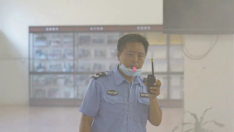 保安人員吹響警哨,引導(dǎo)學(xué)生安全疏散