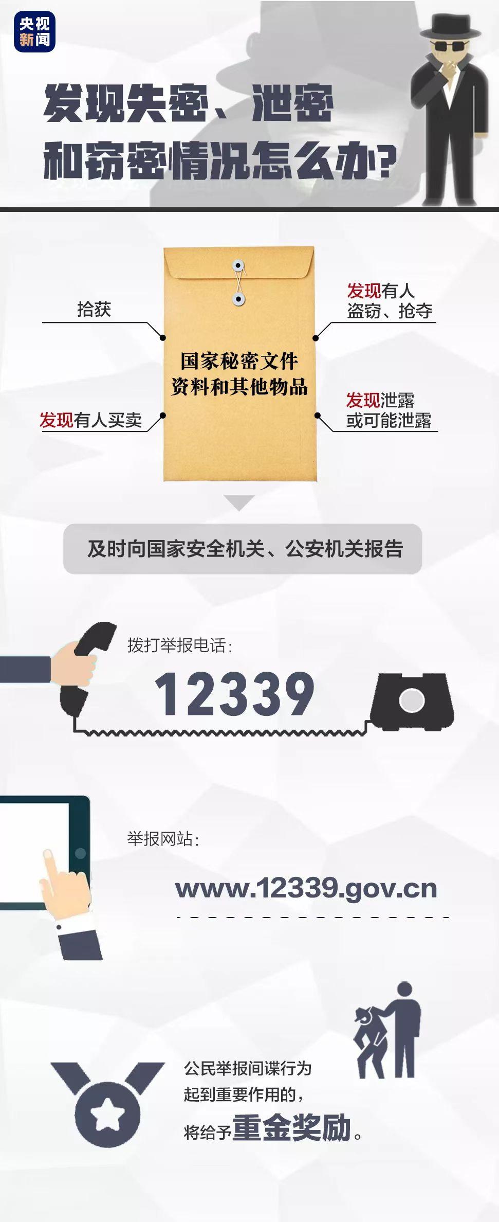 公民、組織可以通過國家安全機(jī)關(guān)12339舉報(bào)受理電話、網(wǎng)絡(luò)舉報(bào)受理平臺(tái)或者國家安全機(jī)關(guān)公布的其他舉報(bào)方式,舉報(bào)間諜行為和其他危害國家安全的行為,以及各類反間諜安全防范問題線索。