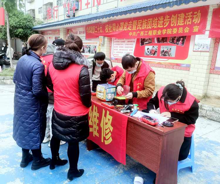 近日,為學(xué)習(xí)宣傳貫徹黨的二十大精神,推動學(xué)校“我為群眾辦實事”活動走深走實,廣西工程職業(yè)學(xué)院黨委組織師生黨員志愿者參加平果市大學(xué)園區(qū)與馬頭鎮(zhèn)城東社區(qū)聯(lián)盟“大黨委”開展的“學(xué)思踐悟二十大 校社同心跟黨走”暨民族團結(jié)進步創(chuàng)建活動,到馬頭鎮(zhèn)城東社區(qū)為居民提供送文化、送服務(wù)等志愿服務(wù)活動。