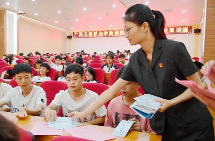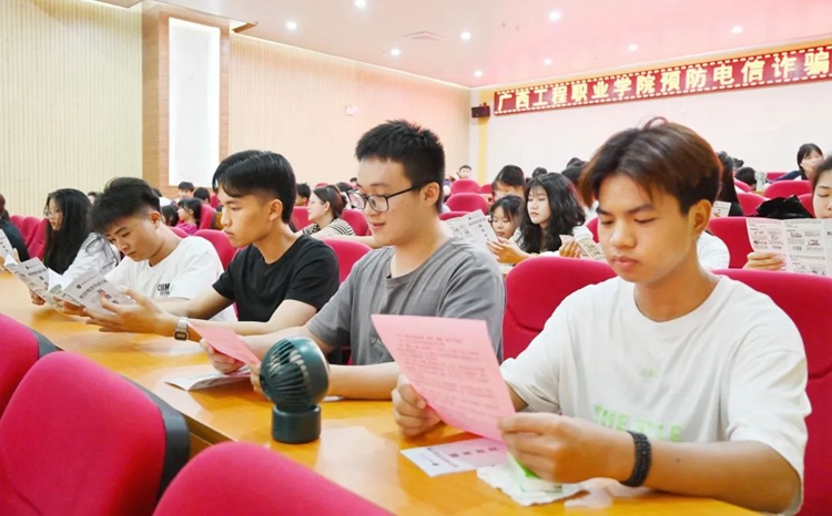為切實做好校園安全工作,進一步提高全校師生防范電信詐騙意識,提高學(xué)生的防詐能力,最大限度預(yù)防和減少電信網(wǎng)絡(luò)詐騙案件的發(fā)生,6月15日,我校邀請平果市人民法院陳姿羽法官助理來校作預(yù)防電信詐騙專題講座。各二級學(xué)院院長、副院長,黨支部書記、副書記,學(xué)生科科長、輔導(dǎo)員、班主任,學(xué)生代表等參加了講座。