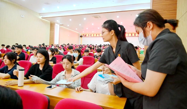 講座上,工作人員現(xiàn)場發(fā)放防范電信網(wǎng)絡(luò)詐騙宣傳折頁、打擊整治養(yǎng)老詐騙守護老年人的“錢帶子”等宣傳資料,進一步幫助同學(xué)們筑牢防詐騙意識。